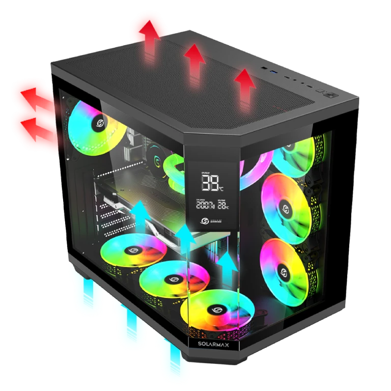 La CM-B950S es una verdadera revolución en diseño y funcionalidad, ideal para quienes son apasionados del gaming y la tecnología. Combinando estilo y rendimiento, este gabinete CUSTOM con display digital de monitoreo lleva cualquier configuración a un nivel superior.