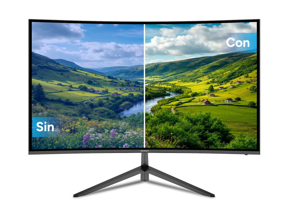 Su diseño curvo permite una visualización más natural y uniforme, reduciendo la necesidad de mover la cabeza y asegurando que cada detalle se vea con claridad en todo el panel.