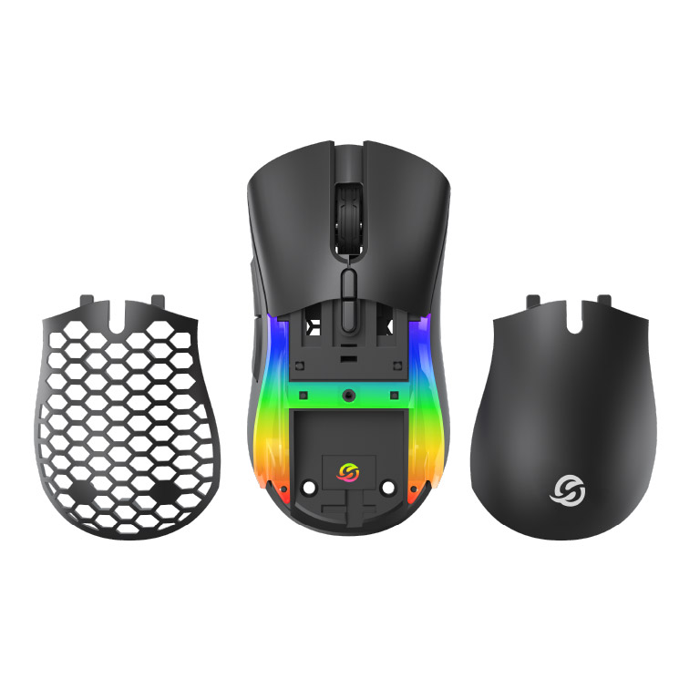 El sistema de pesas ajustables de 4 gramos te permite tener un mouse más ligero o pesado según tu estrategia de juego. El frente liso intercambiable ofrece una sensación suave y clásica, mientras que el frente MESH proporciona mayor ventilación y agarre para partidas extensas.