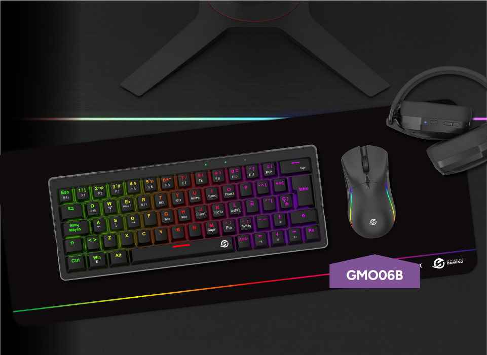 El mouse gamer GMO06B combina tecnología de e-Sports con un diseño ultraliviano, luces RGB y una ergonomía avanzada, brindándote una ventaja real en cada clic.