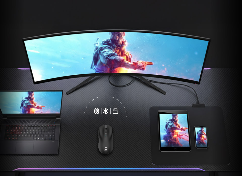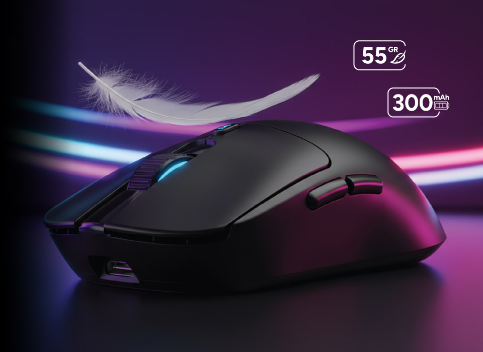 Su chipset Pixart 3311 garantiza una respuesta ultra rápida y precisión milimétrica, su conectividad Tri-Modo (Cable, Bluetooth y Nearlink) una conexión estable y su batería de larga duración de 300 mAh te permiten jugar sin interrupciones, con total libertad y rendimiento constante.