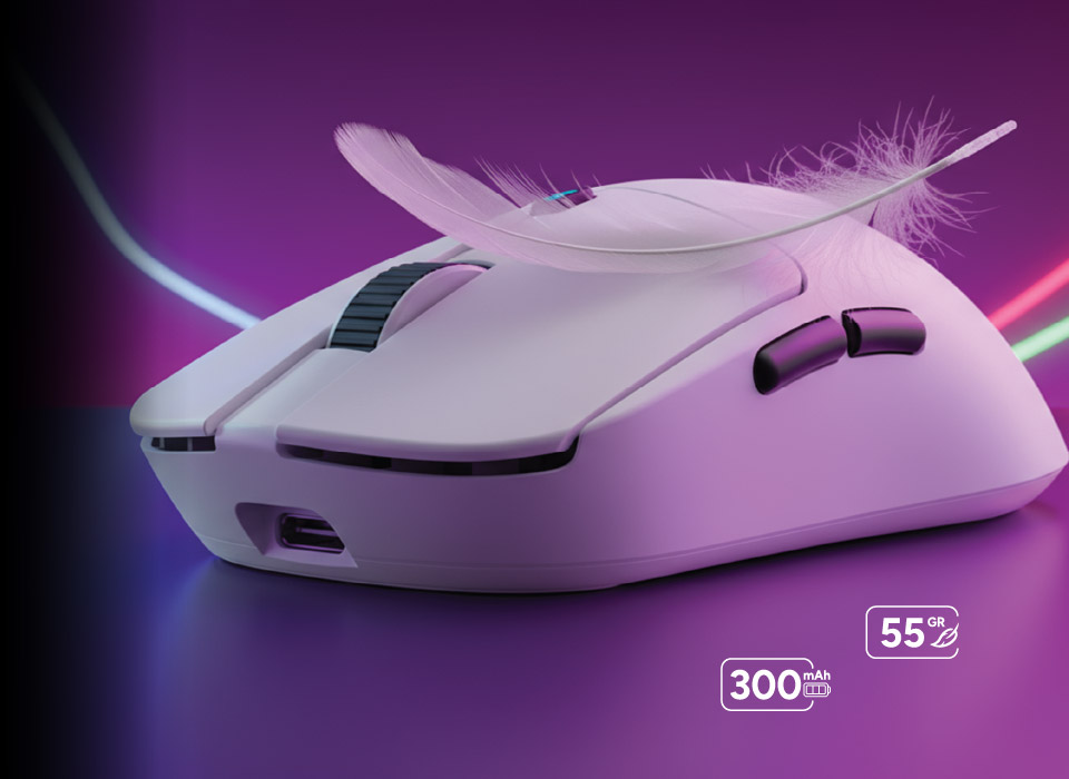 Su chipset Pixart 3311 garantiza una respuesta ultra rápida y precisión milimétrica, su conectividad Tri-Modo (Cable, Bluetooth y Nearlink) una conexión estable y su batería de larga duración de 300 mAh te permiten jugar sin interrupciones, con total libertad y rendimiento constante.