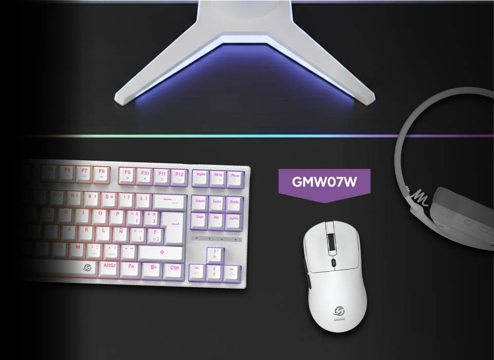 El mouse gamer GMW07W combina tecnología de e-Sports con un diseño ultraliviano de 55 g y ergonomía avanzada, brindándote una ventaja real en cada clic.