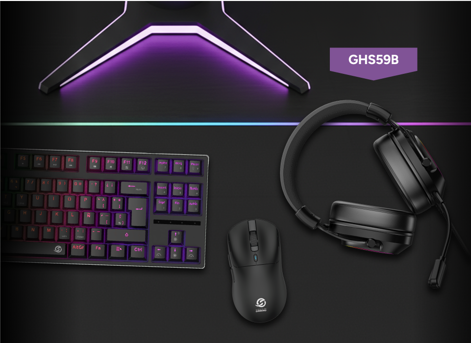 Los auriculares de gaming GHS59B ofrecen una experiencia ideal para jugadores que buscan un sonido estéreo envolvente y de alta fidelidad.