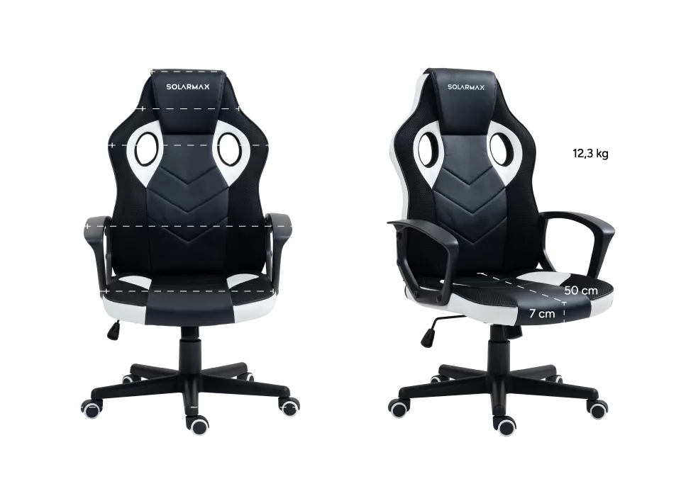 La silla SXGC-6001-WH combina estilo y funcionalidad para adaptarse a cualquier espacio. Su mecanismo de ajuste de altura y base giratoria de 360° permiten moverte con libertad y acomodarte fácilmente frente a tu escritorio o setup de gaming. Con un diseño deportivo y moderno, esta silla ofrece ergonomía y soporte, ideal tanto para largas jornadas de trabajo como para maratones de juego. Los reposabrazos fijos aseguran una posición relajada y natural de los brazos, completando una experiencia de confort integral.