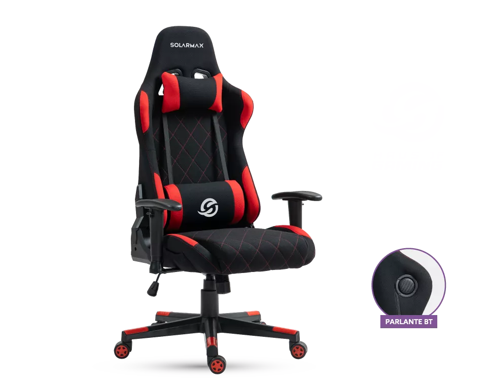 La silla de gaming SXGC-7007-RD está diseñada y pensada para ofrecer el máximo confort durante tus sesiones de juego, streamings u horas de trabajo. Cuenta con reposabrazos ajustables, respaldo reclinable y soporte para cabeza y zona cervical, lo que la convierte en una opción ideal para quienes buscan un modelo elegante con prestaciones de nivel profesional. Su diseño estilo racing, combinado con el parlante Bluetooth integrado, aporta una experiencia de juego más envolvente e inmersiva.