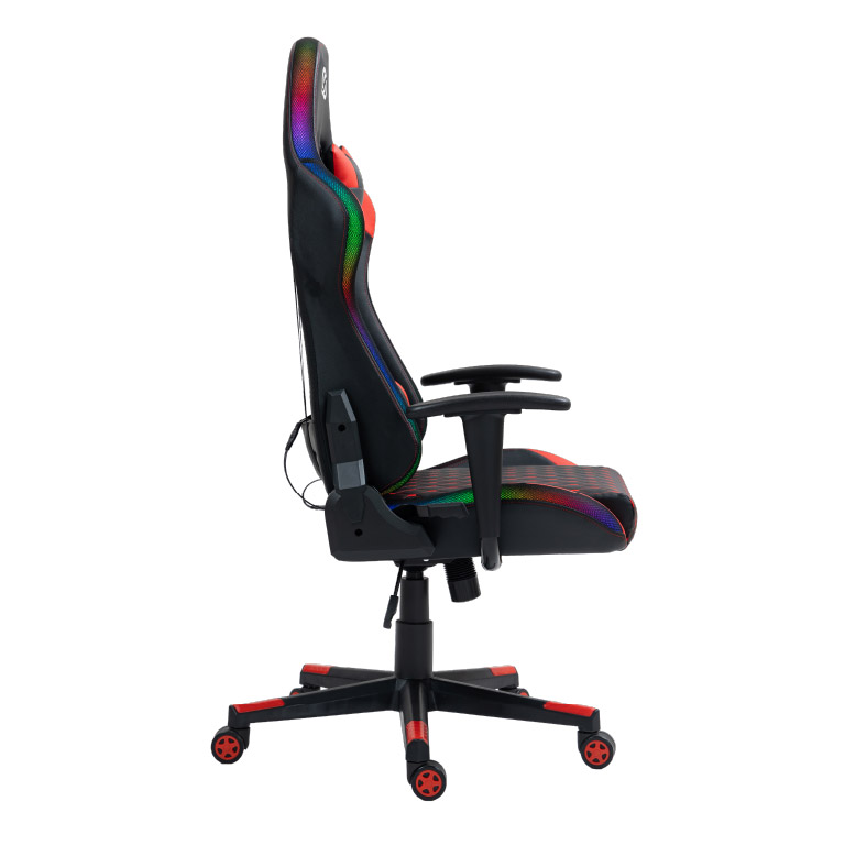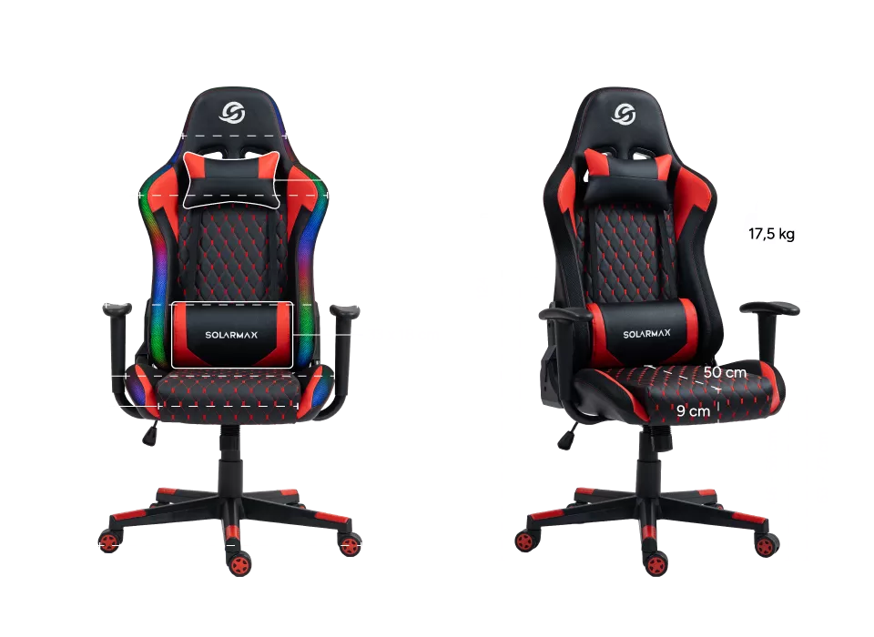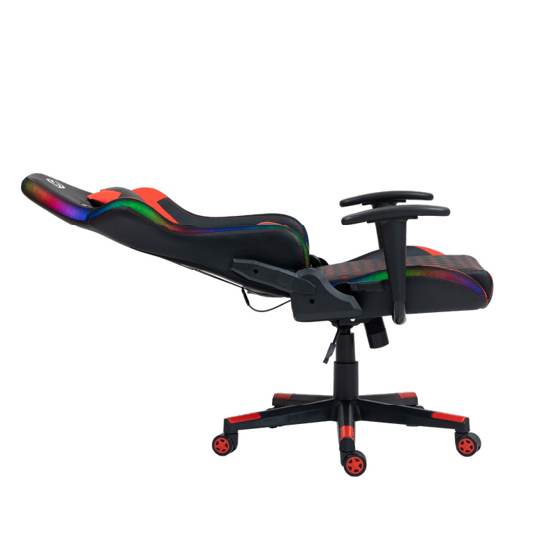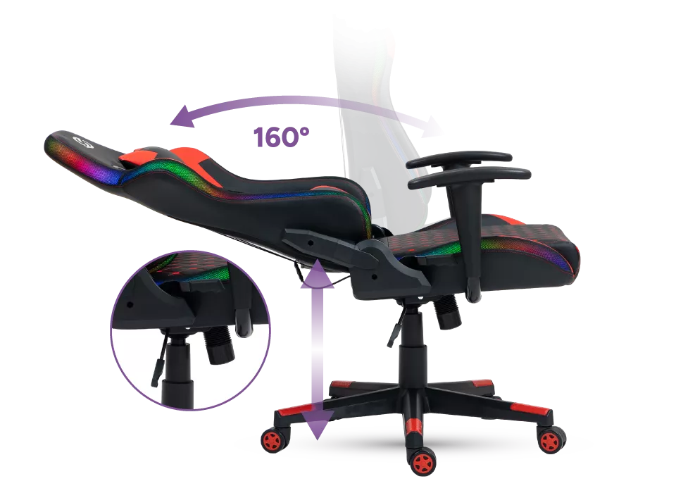 Cuenta con reposabrazos, respaldo reclinable con apoya cabeza y cervical, lo que la convierten en la opción ideal para quienes buscan una silla elegante y prestaciones profesionales. Tiene diseño racing e iluminación RGB, perfecta para elevar el nivel de tu setup y de juego.